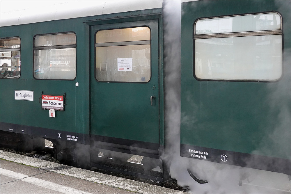 Was ein sofortiges Wiedererkennen war sind die hier sichtbaren Dampfwolken, das ist Erinnerung pur. Schon früher gab es an den Kupplungen- wenn diese nicht die richtige Passform hatten oder einfach undicht waren- permanenten Dampfaustritt und man fühlt sich heute angesichts solcher Momente wirklich in eine andere Zeit zurückversetzt... ;)
